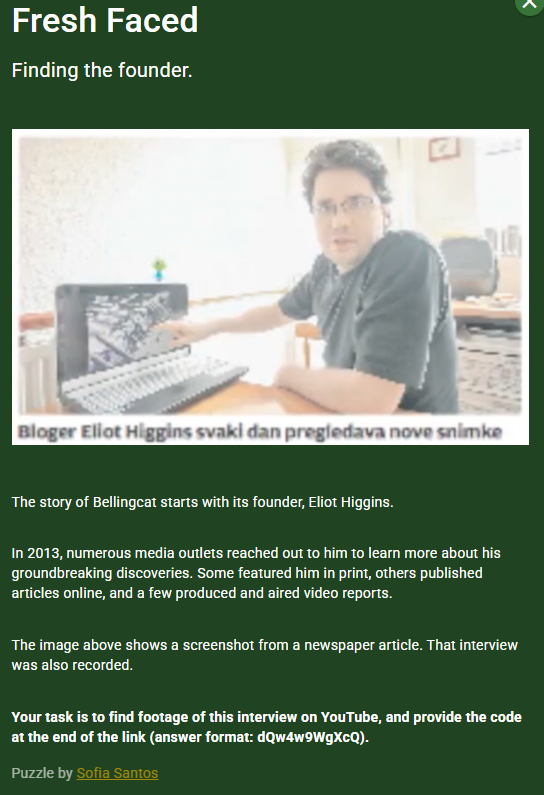 Bellingcat Challenge: Fresh Faced