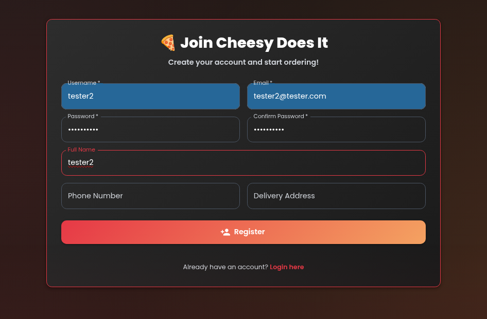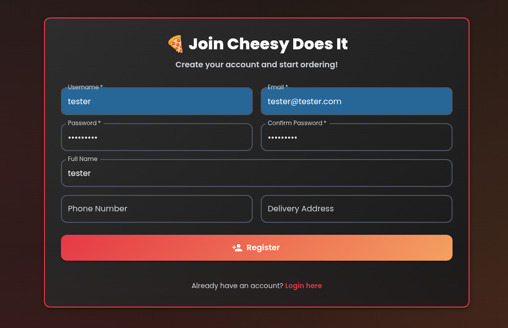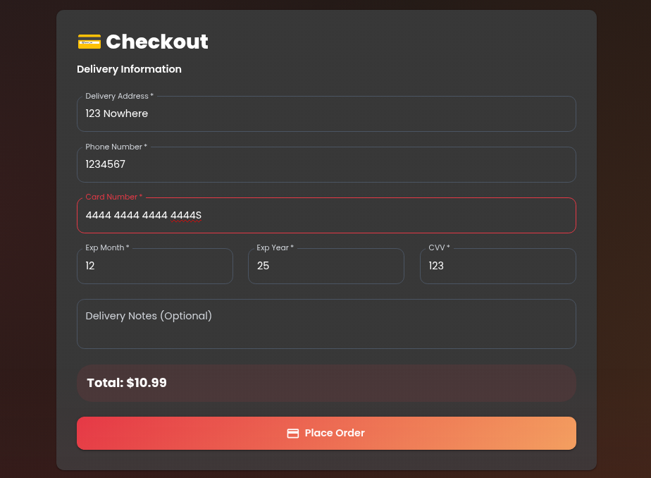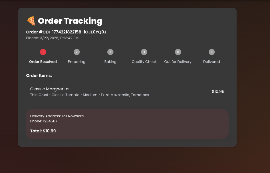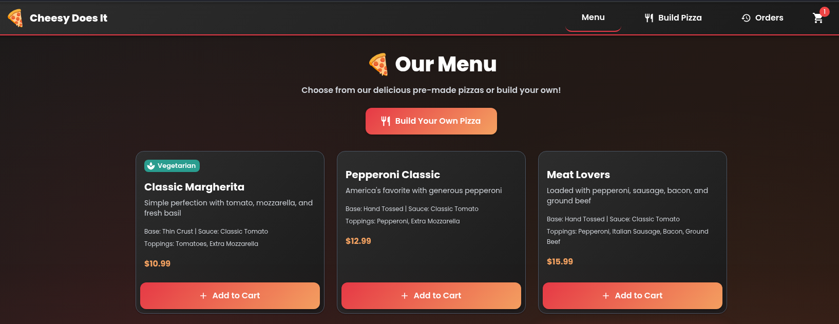 After logging in, we can see the application lets us order food — in this case, pizza.