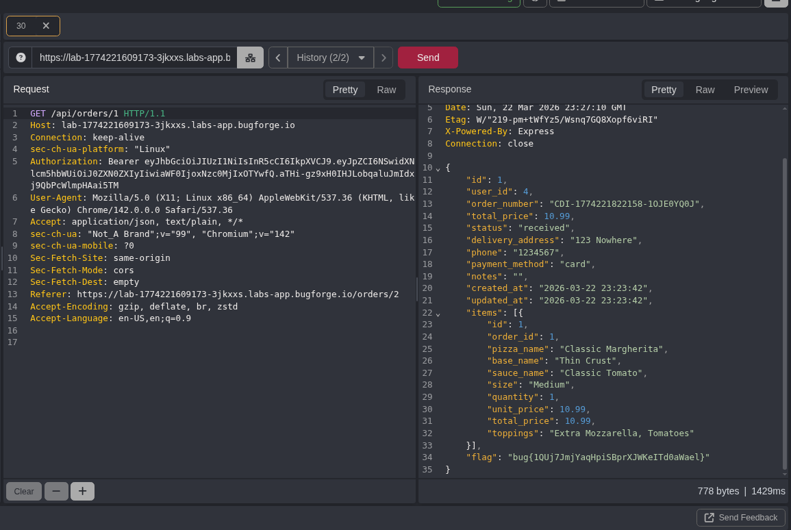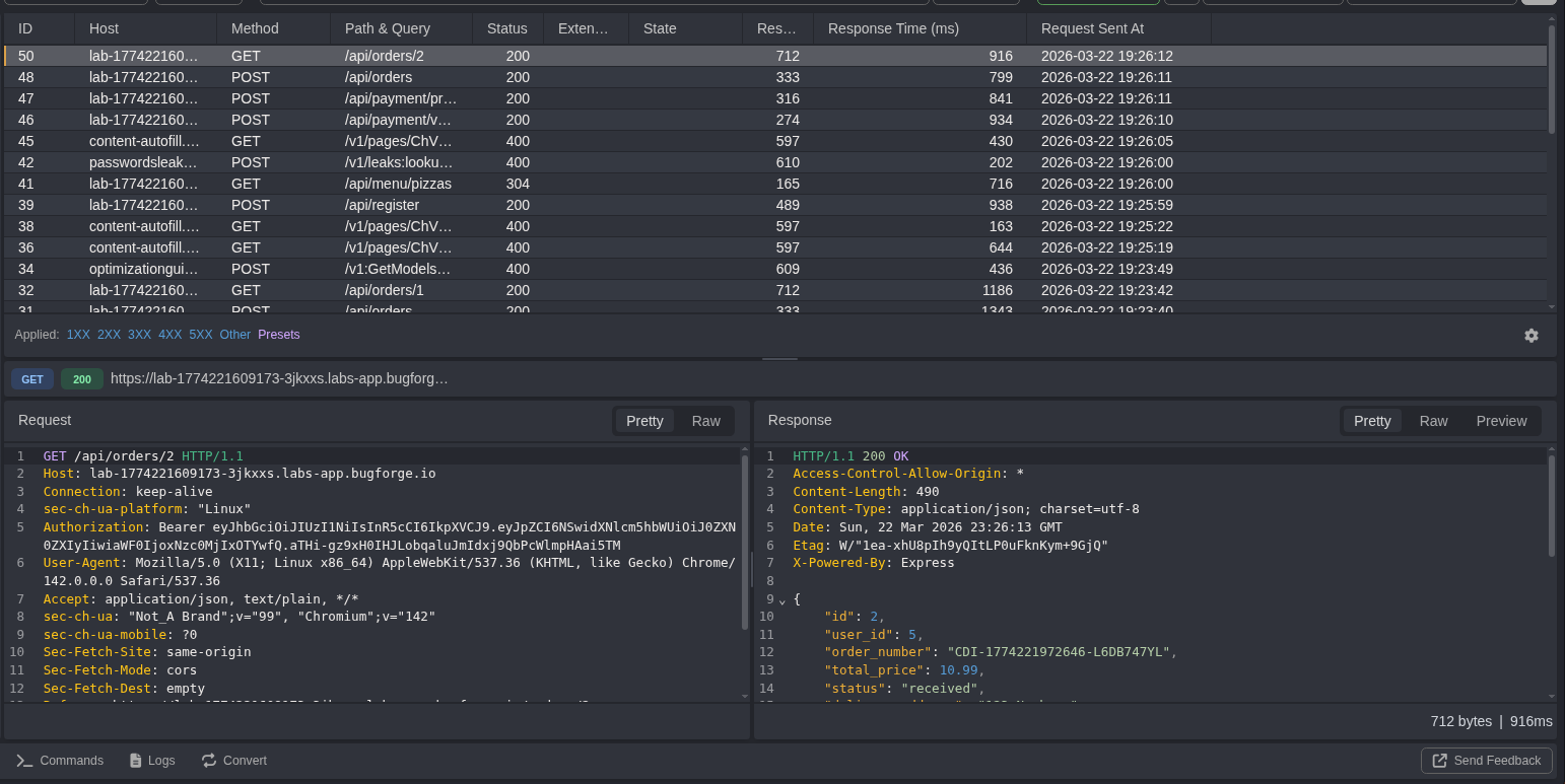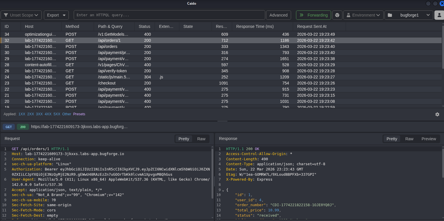 Opening the proxy (Caido / Burp), we can see the request for the order.