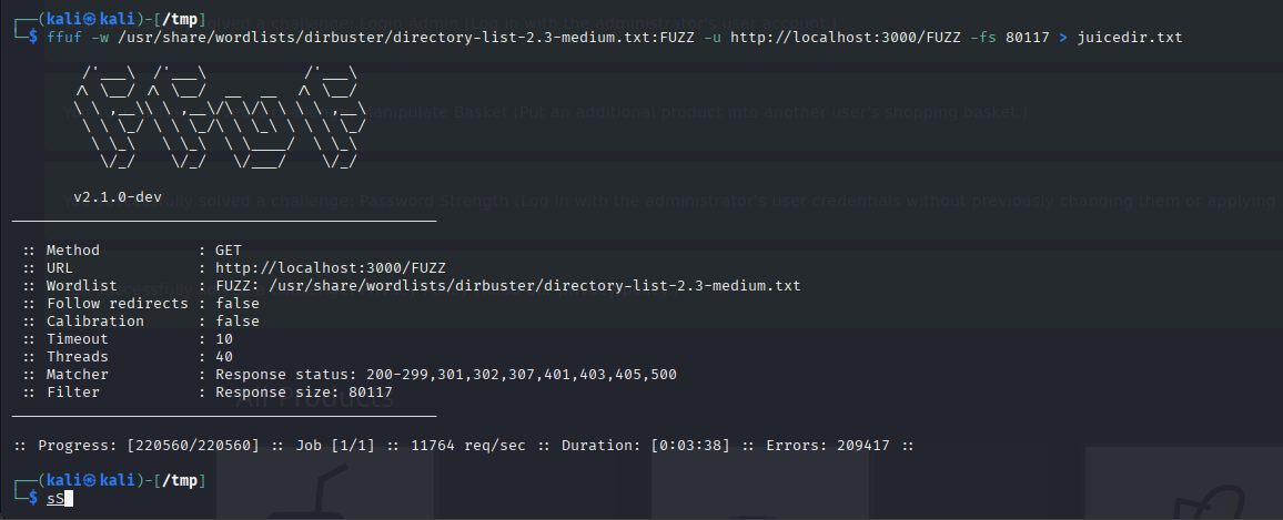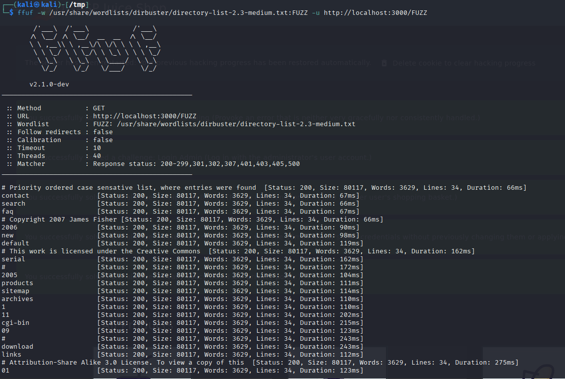 Once you’ve spun up your Juice Shop at http://localhost:3000, it’s time to drop some FFUF fury: