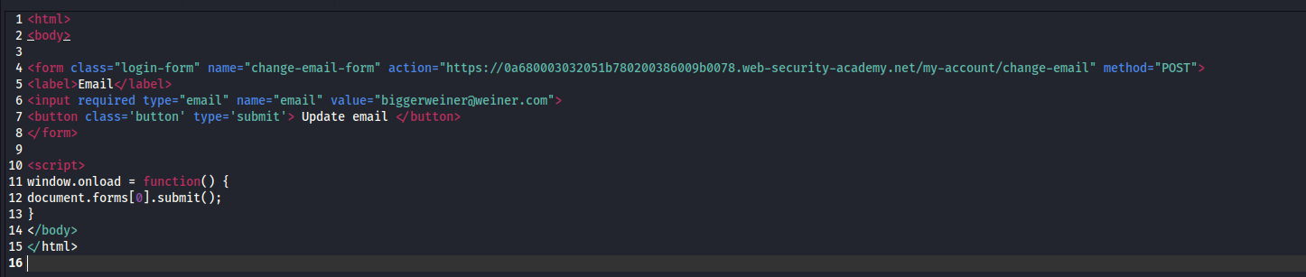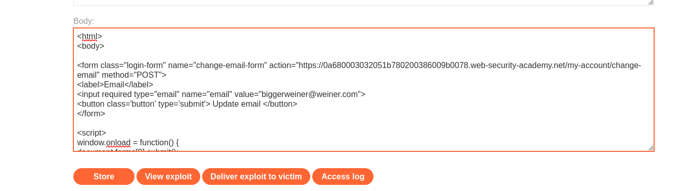 We’ll craft a sneaky form, auto-submit it, and host it on the Exploit Server to trigger the exploit