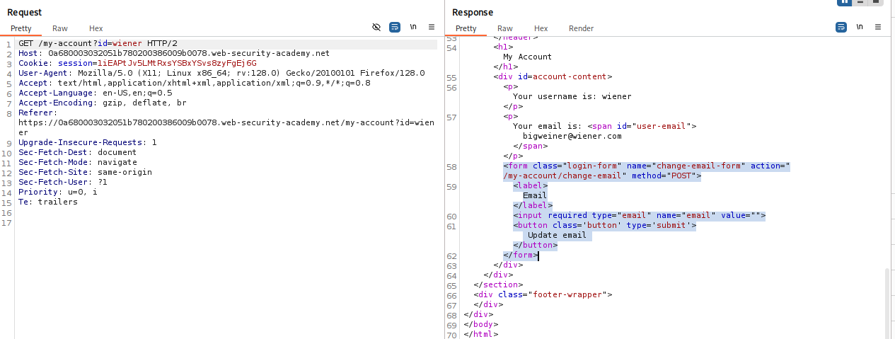 This lets us access the Change Email functionality. We need to mimic a legitimate request to fool the system.