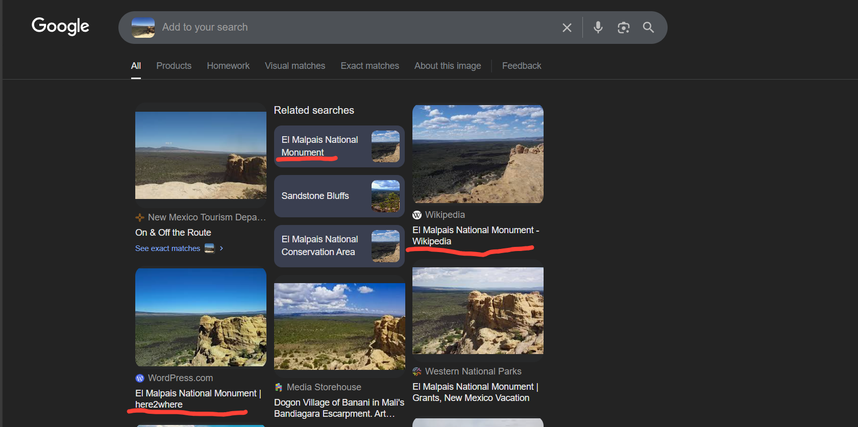 - If you remember from our Google search, we had many hits for "EL Malpais National Monument." So we can do a quick Google search and find some official information, so we can say with confidence what the location is!