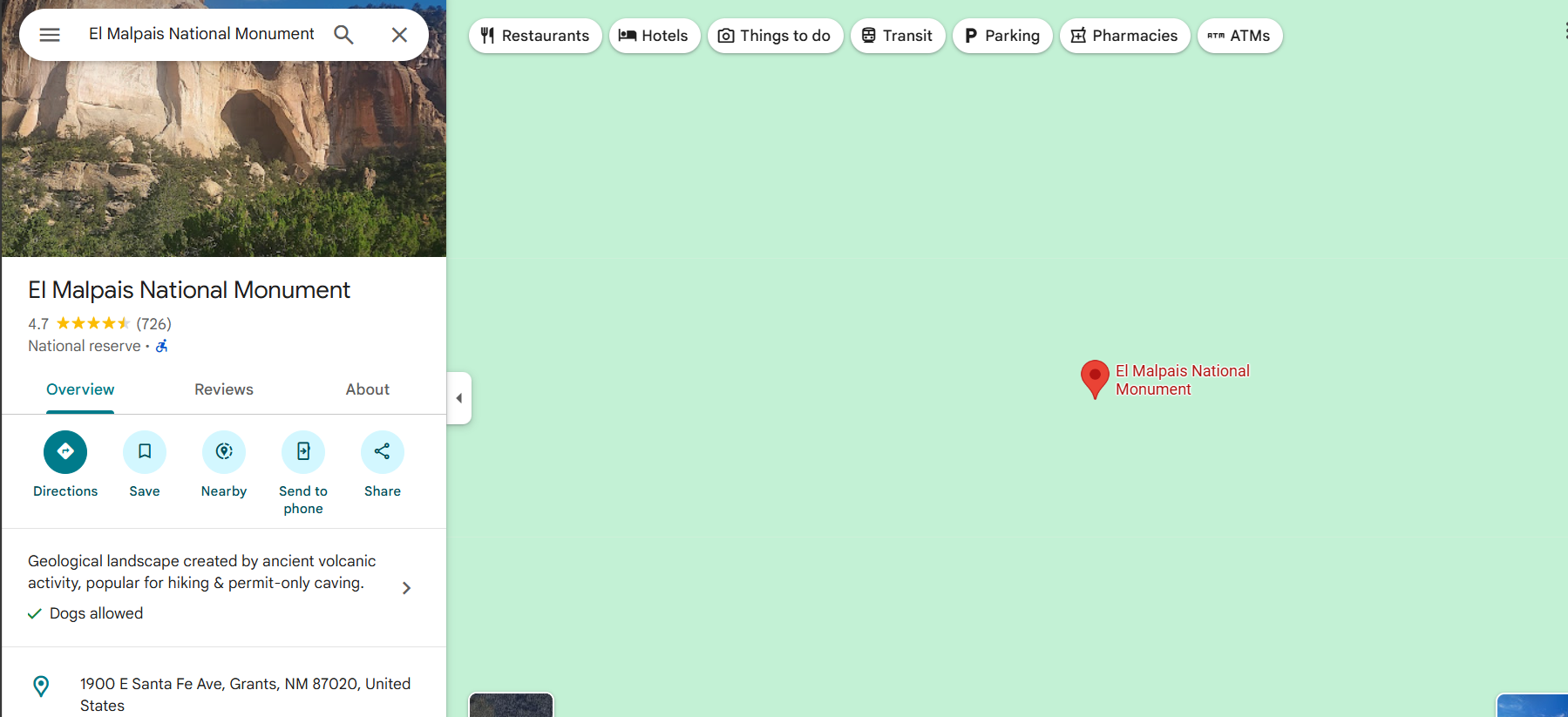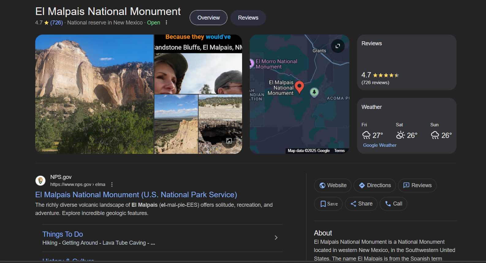 - From our Google search, we can already see a name "El Malpais National Monument"