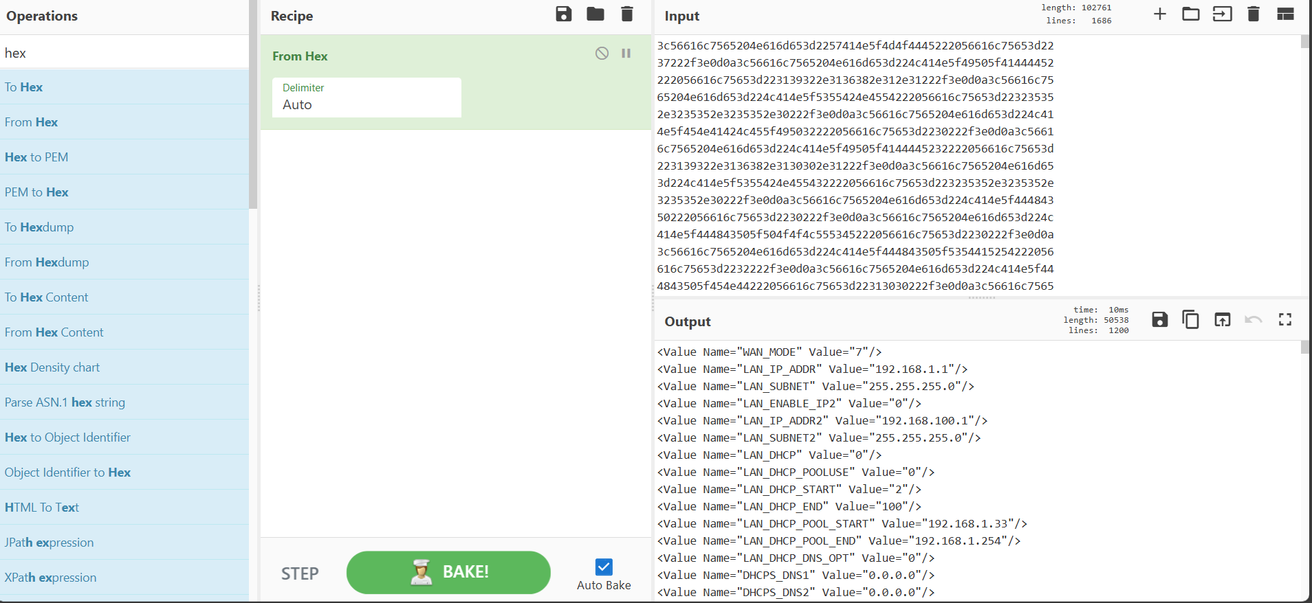 now we need to find what "recipe" will unlock this. If you remember from our previous steps we created a hex out of this information so lets try to decode from hex.
