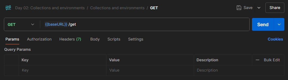 Now let’s build a request, but instead of typing out the full URL, we’ll use:
