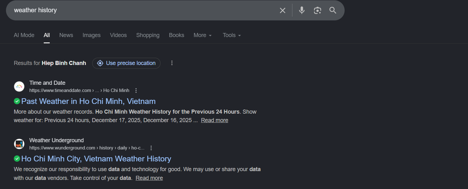 I searched for historical weather data for the location and date. Two main sources appeared, but for this challenge.