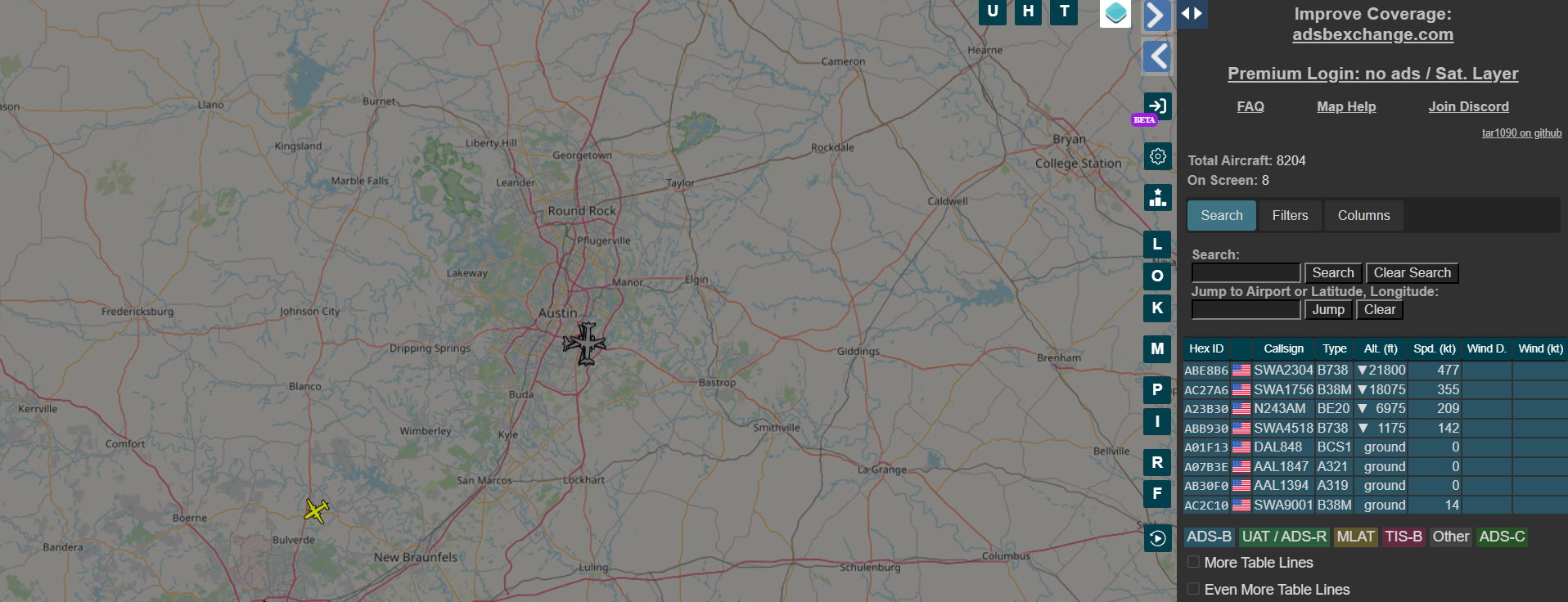 Next, I searched for a reliable aircraft-tracking platform and selected ADS-B Exchange, because:
