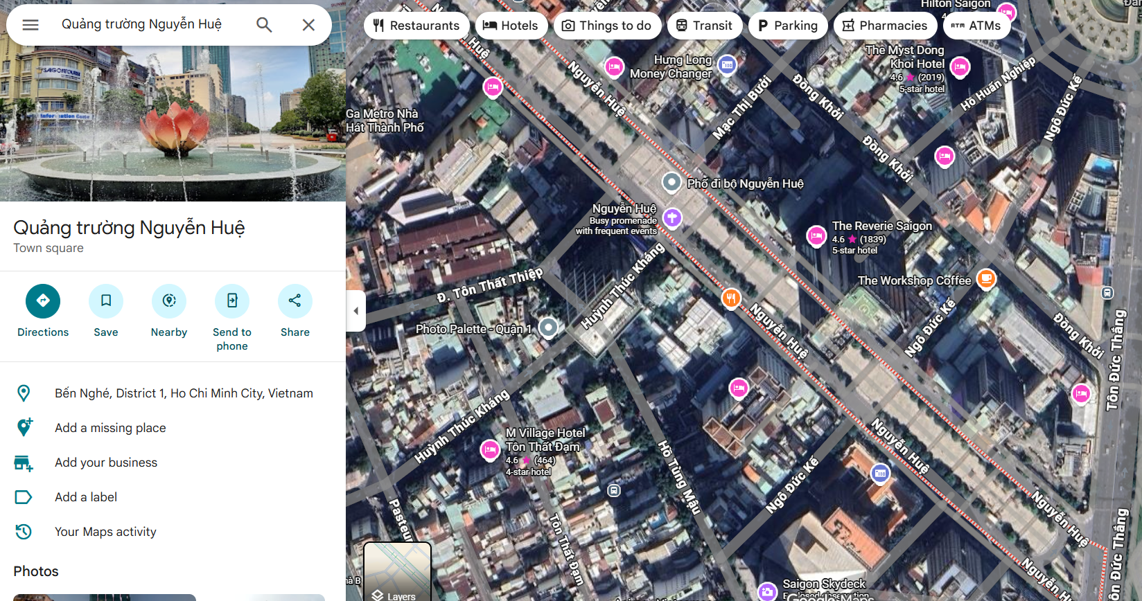 - Nguyễn Huệ Street marked as a pedestrian-only boulevard